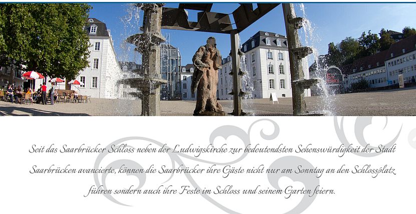 In den 1980er Jahren vollständig entkernt wurde das Saarbrücker Schloss in Anlehnung an das Barockschloss aus dem 18. Jahrhundert grundlegend saniert. Einzigartig und unverkennbar macht es sein postmoderner gläserner Mittelbau, von Deutschlands einzigem Pritzker-Preisträger, Prof. Dr. Gottfried Böhm. In diesem Trakt befindet sich auf über 400 qm der überwiegende Teil der lichtdurchfluteten großzügigen Veranstaltungsräume.